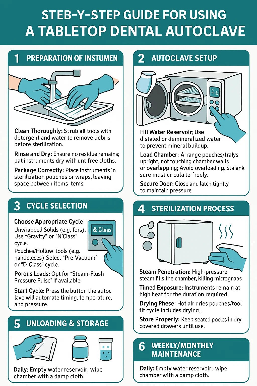 Zde je jasný návod krok za krokem pro použití a stolní dentální autokláv :
